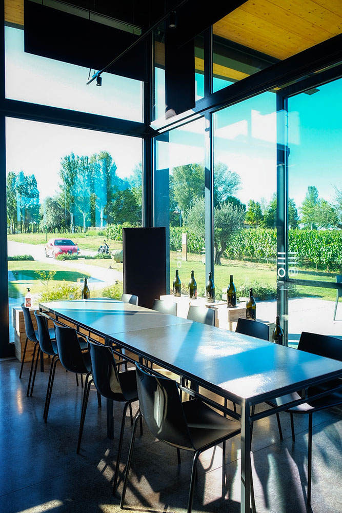 E sopra alla cantina è stata creata un’ampia sala riunioni per eventi e formazione non solo dedicati al vino.