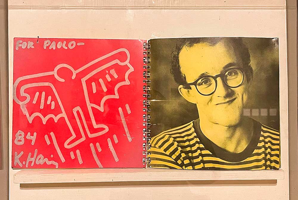 Fra le opere di Keith Haring esposte c’è il vinile di “Are you ready for love” realizzato per Elton John. Particolarmente interessante la testimonianza dell’amicizia fra Haring e Buggiani, con il disegno originale con dedica di “The Flying Man”. Un nuovo personaggio con le ali, ispirato alle performance urbane che Paolo Buggiani realizzava per le strade di New York.