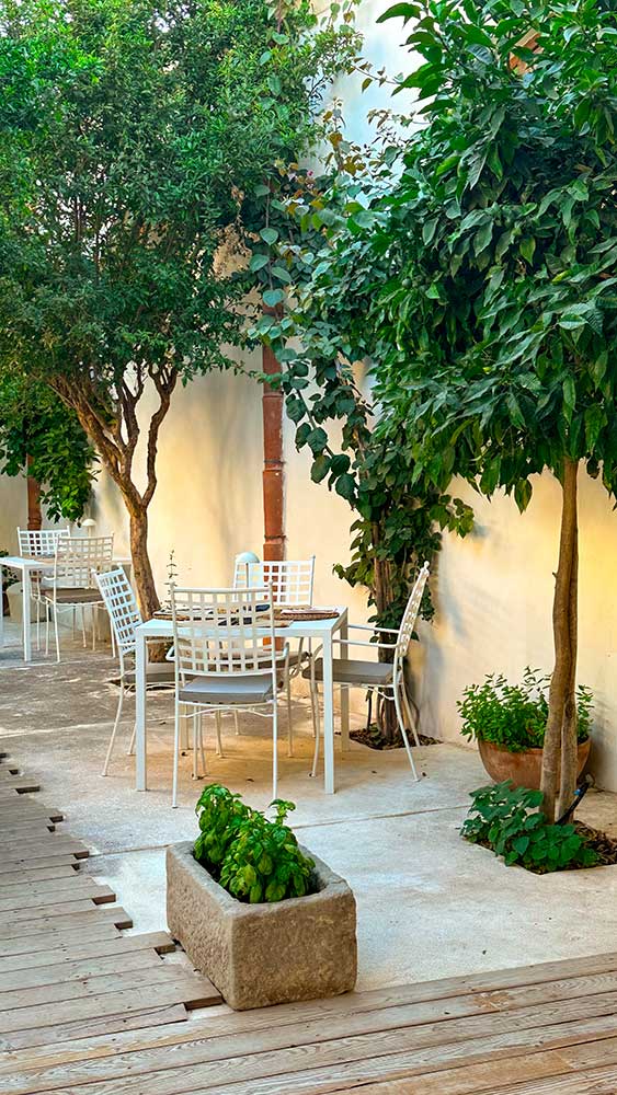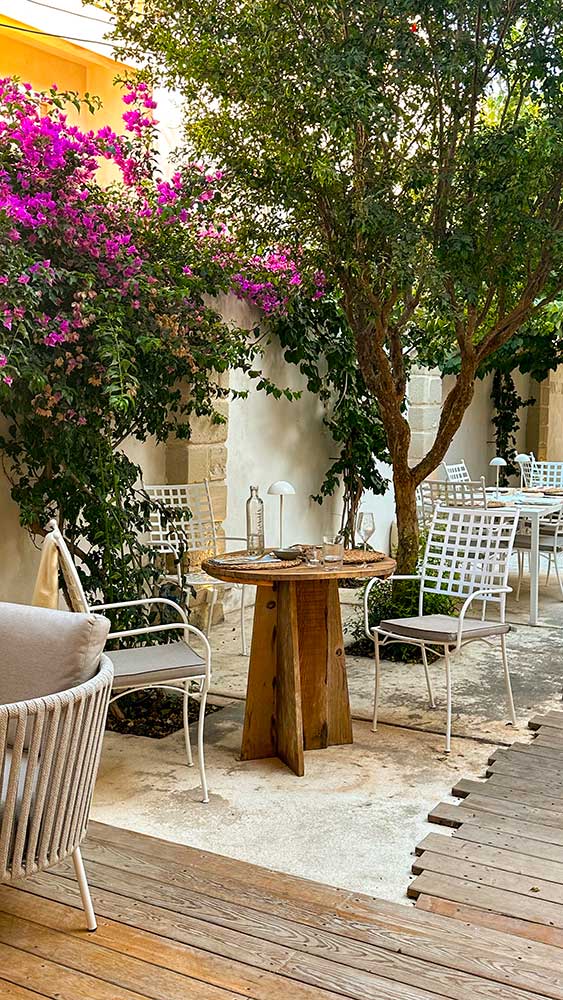 La sera lo spazio diventa lounge e ristorante per una serata elegantissima. Il nuovo spazio dell’enoteca, in un piccolo giardino interno, è curatissimo e prevede deliziosi taglieri di pesce fresco.