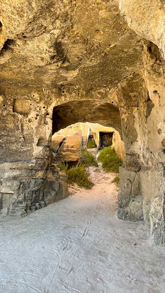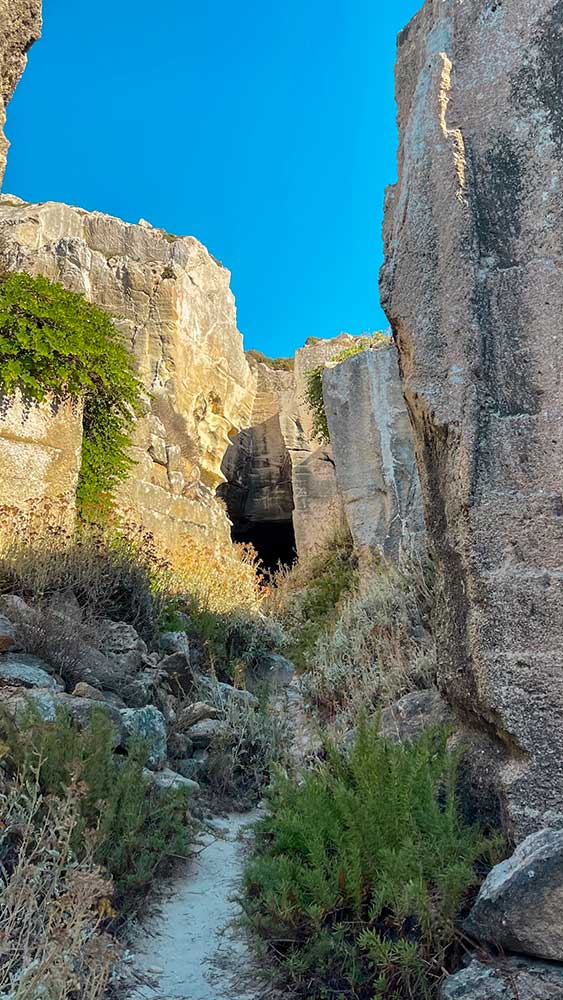 In bicicletta o scooter segui la strada costiera che da Spiaggia San Nicola porta verso Cala Rossa e segui la direzione per Scalo Cavallo. La strada termina proprio di fronte all’ingresso delle Cave, su un piccolo piazzale con vista sul mare e sulle montagne accanto. Entra e segui il percorso in mezzo alle piante che crescono ovunque sulle rocce ed entrerai all’interno di queste incredibili grotte di calcarenite.