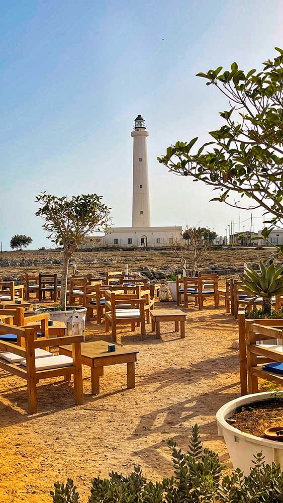 Più piccolo rispetto al Faro di Punta Sottile, e abbandonato ormai da tempo, il faro si specchia su un mare incantevole.