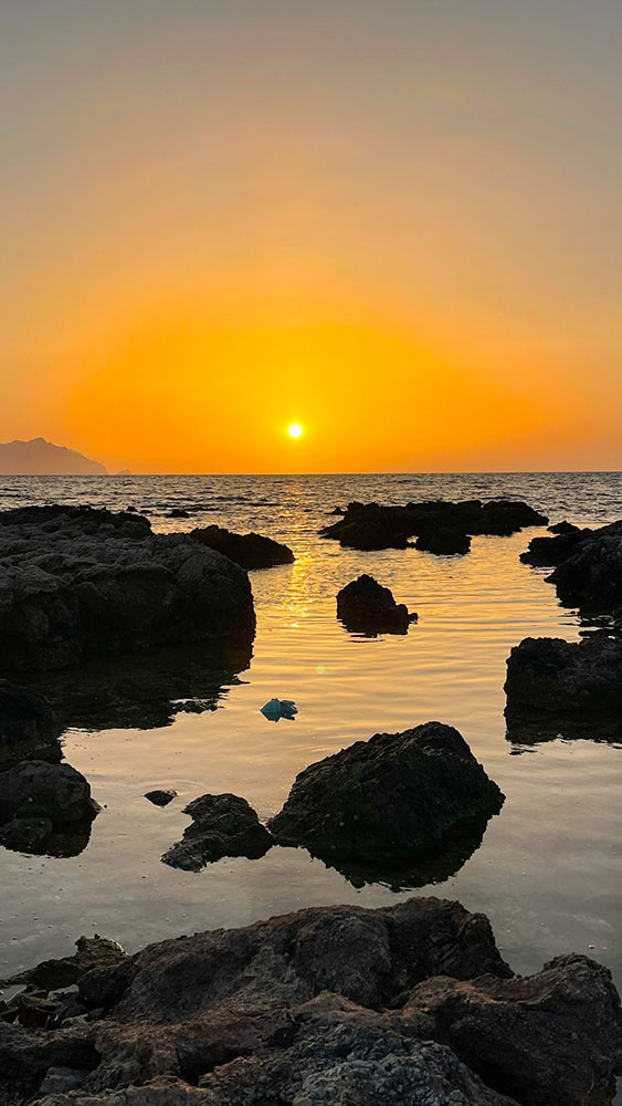 Questo è il posto più bello per l’aperitivo, da qui infatti si vede il sole calare direttamente in mare, senza ostacoli visivi.