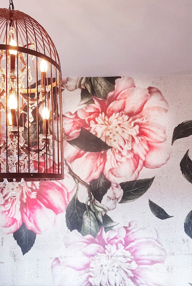 Le pareti con fiori meravigliosi, i lampadari design e l’atmosfera romantica mi hanno letteralmente conquistata!!!
